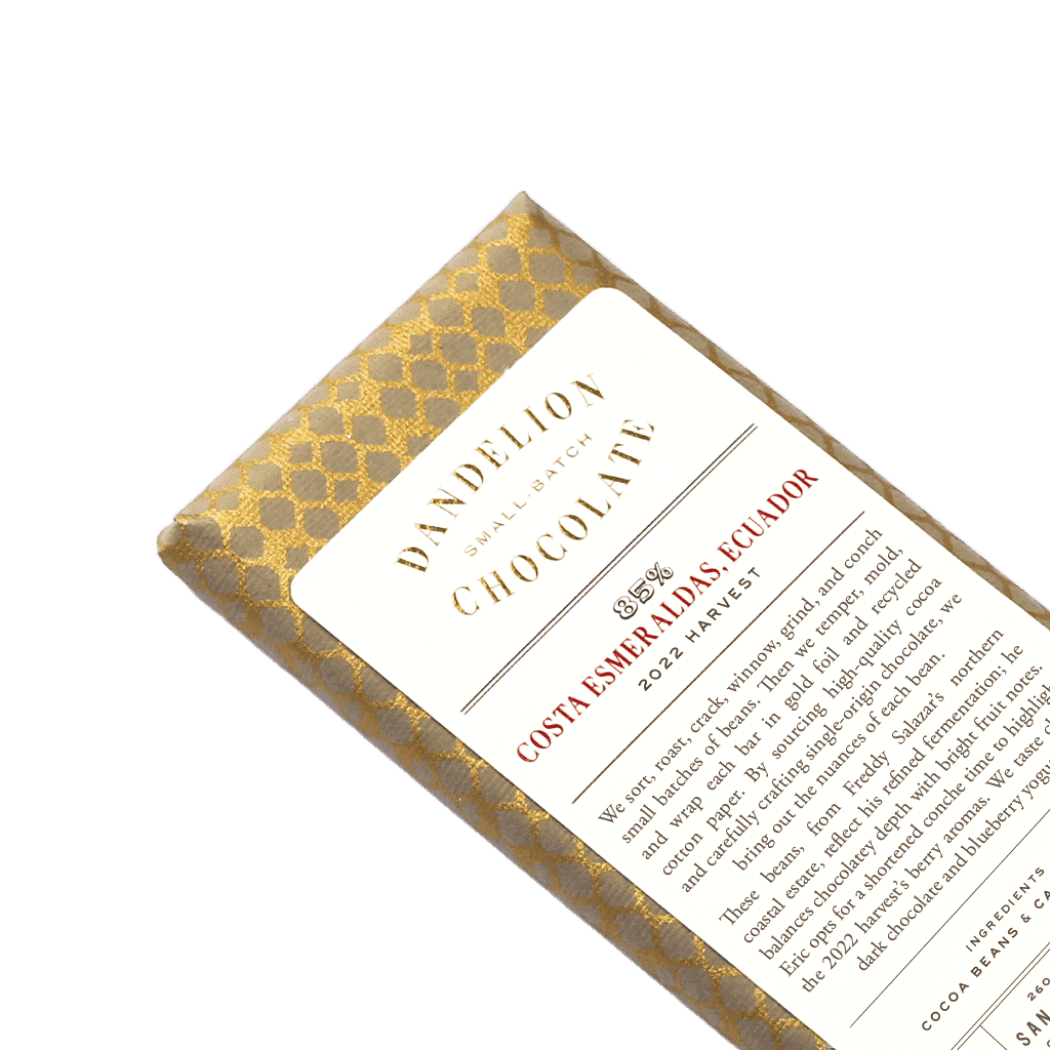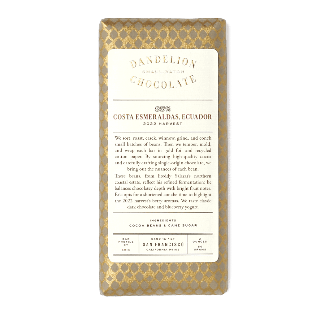 Freddy Salazar, the owner of Costa Esmeraldas, produces unique cocoa that we make into one of our best-selling bars. On formerly dry pastureland and wild forest inaccessible by any road, he and his family created a 10-hectare farm and cocoa-processing facility. What began as a passion project for the Salazars has evolved into a thriving farm. In addition, the farm produces bananas and citrus, and 50 hectares of land have been left as virgin forest, creating a thriving habitat for flora and fauna.