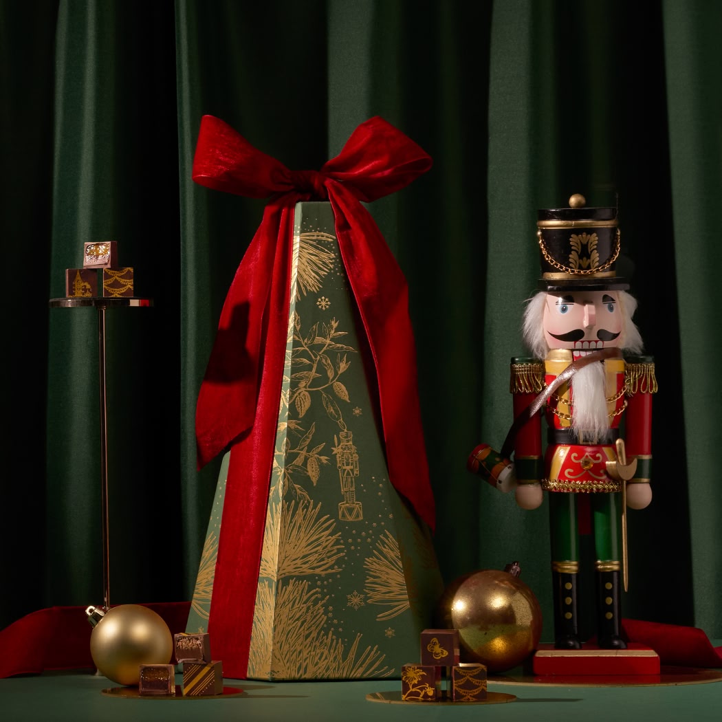 Spruce-Infused House Ganache + Peppermint-Infused Chocolate Caramel Clusters + Hazelnut Praliné