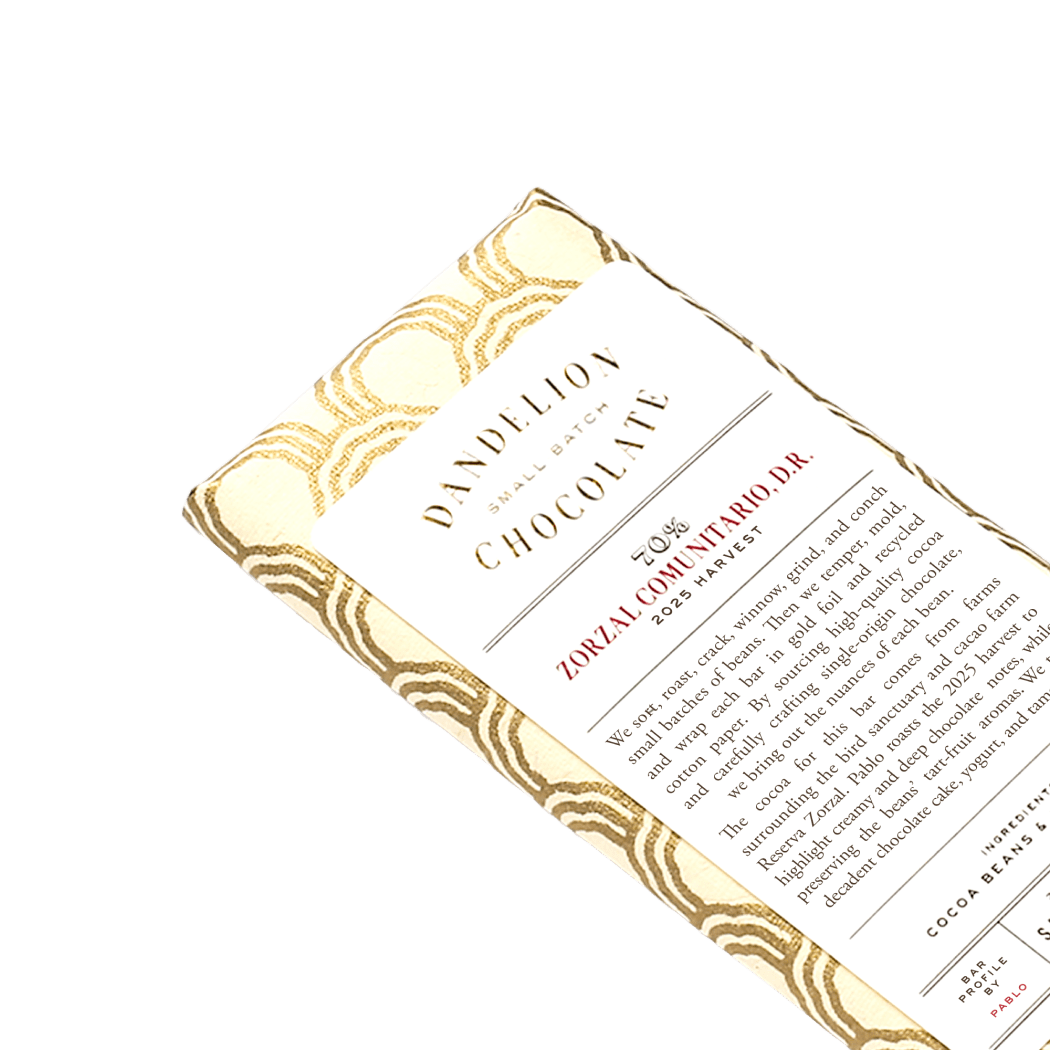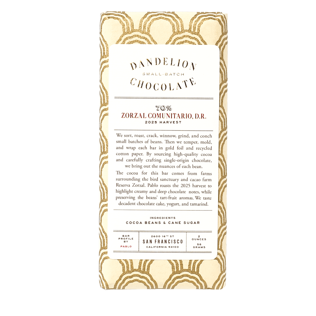 Near the D.R.’s northern coast, within private bird sanctuary Reserva Zorzal (for the endangered Bicknell’s thrush), Zorzal Cacao grows organic cacao on farm plots interspersed with “forever wild” land, then ferments the beans, and sells them under the name Zorzal Estate. They also buy and ferment beans from independent farms around the Reserva, and sell them under the name Zorzal Comunitario. Cocoa income helps fund the Reserva’s conservation efforts; in 2023, Zorzal Cacao earned the first cacao-farm Bird Friendly Certification.